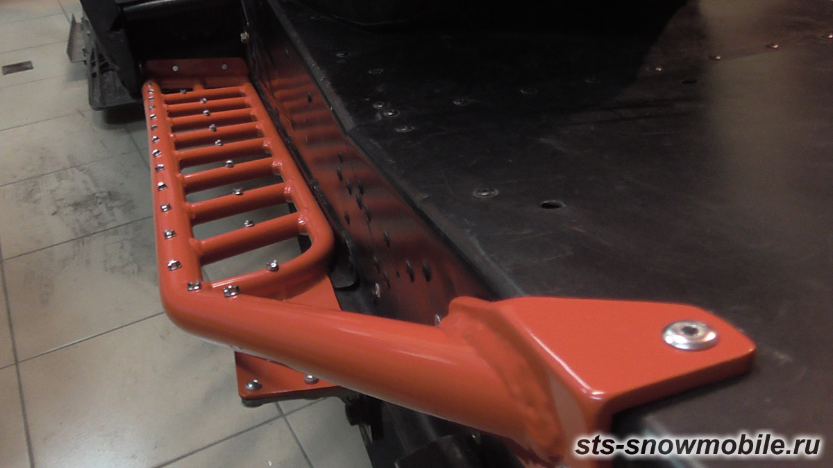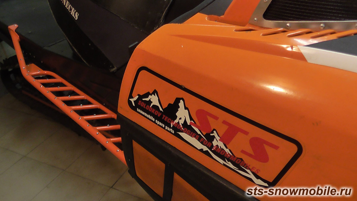STS предлагает “человеческие” подножки на легендарный и непобедимый М-8. Это самая удачная для своего времени платформа была настолько хороша, что инженеры Arctic Cat выпускали ее без серьезных доработок почти 10 лет. И все это время снегоходчики мучились с обросшими льдом подножками, недоумевая, чем они заслужили такую кару. Больше на снегоходе дорабатывать было почти нечего т.к. все было на своем месте, ну, или почти)). Именно поэтому от снегоходов на этой платформе и сейчас не спешат избавляться, т.к. мопеды зарекомендовали себя как надежные и преданные друзья. Подножки отлично отводят снег, легко монтируются.